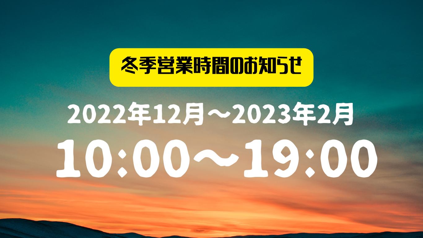 冬季営業時間変更のお知らせ 2023 1/24 お知らせ 2022年12月25日 12月より来年2月末まで営業時間を10:00〜19:00に変更いたします。 お知らせ お知らせ 関連記事 3月定休日案内 2023年3月3日 ホームページをリニューアルしました。 2023年1月24日