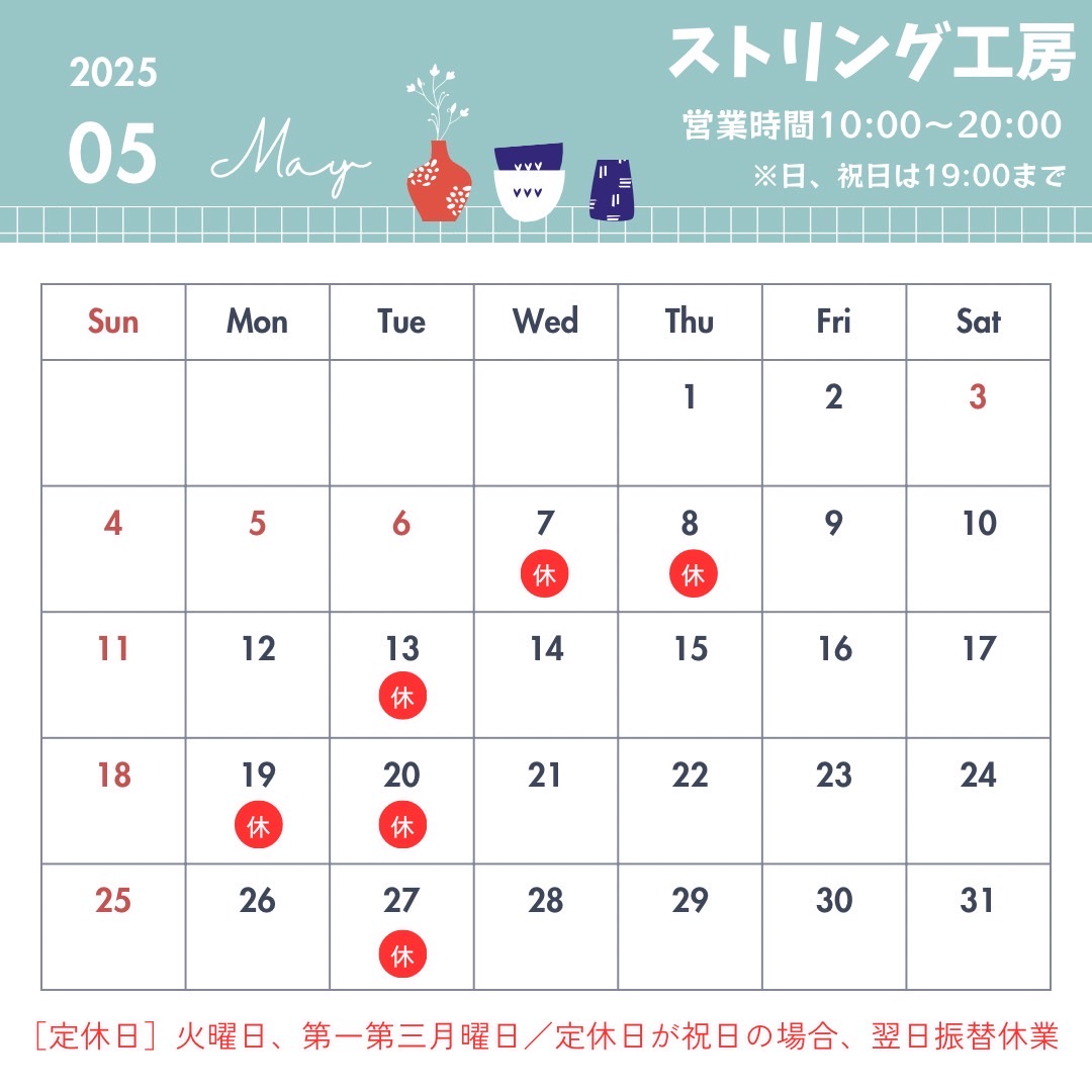 5月営業日のカレンダー 2025 5/07 未分類 2025年5月7日 未分類 お知らせ ゴーセン ソフトテニス テニス バドミントン ミズノ ヨネックス 関連記事 ガット張り工賃価格改定のご案内 2026年1月29日 新春おみくじ2026 2025年12月31日 2025-2026年末年始大セール 2025年12月23日 技術講習会のご案内 2025年11月26日 11月3日イベント大抽選会結果発表 2025年11月12日 11/3張替えについてのご案内 2025年10月29日 11月2日、3日営業時間変更のお知らせ 2025年10月25日 11月3日イベント時大抽選会開催! 2025年10月25日
